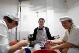 Пётр: -- Первый курс выполняет различные работы на благо семинарии: кошение травы, нужно картошечку с прихода принести. Для меня самым тяжёлым было разносить посуду в трапезной.